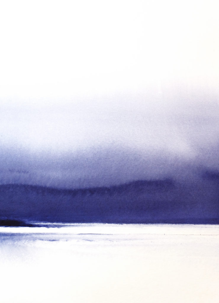 Sanna Myrttinen, Indigo Days Nr.2, 2025, ink on paper, 40x50cm mounted and framed